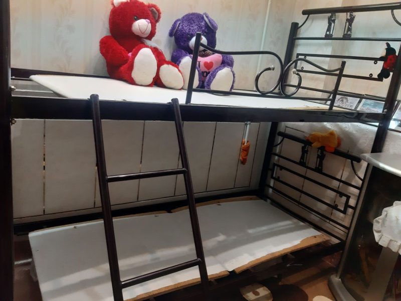 تمیز و درحد نو، دارای نردبان جدا شونده، کفی چوبی با اسکلت های آهنی در هر دو طبق، طبقه بالا دارای محافظ برای جلوگیری از افتادن