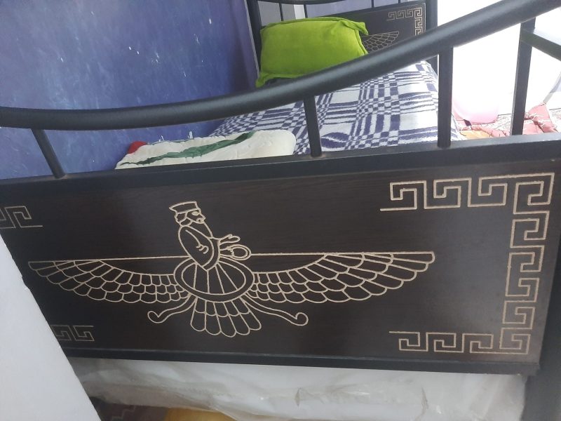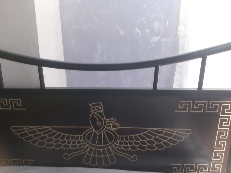 تخت دو نفره ترکیبی از آهن و چوب طرح هخامنش (در حد نو)