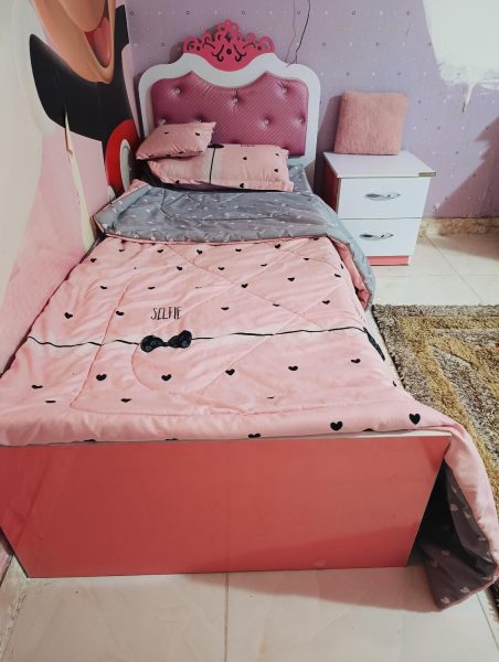 تخت خواب دخترونه همراه 1 پاتختی و 1تشک مارک رویال،وهمراه روتختی یکنفره4تیکه