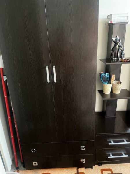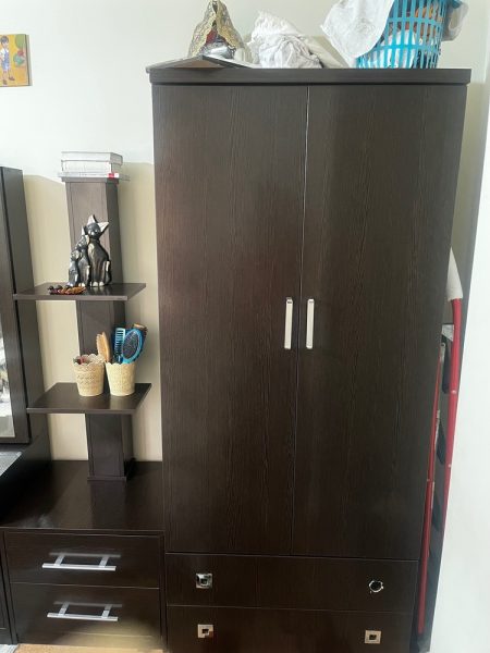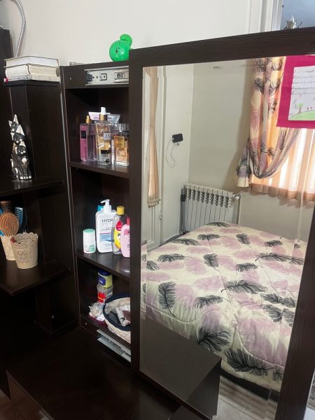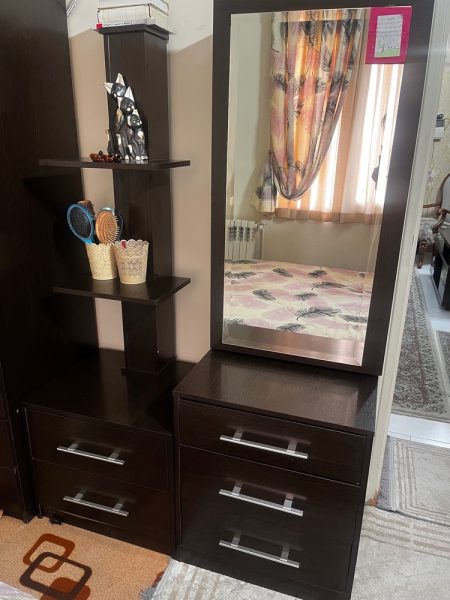 تخت دونفره ی تمام ام دی اف کاملا تمییز با کمد دو در بادوکشو به عرض ۸۰وارتفاع ۱۸۰به عمق ۵۰ و میز آرایشی عرض ۱متر به عمق ۵۰سانت هم میشود کنارهم گذاشت هم چسبیده همراه با ۵کشو