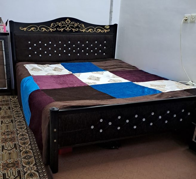 تخت دو نفره نو نوست اصلا استفاده نشده طرح چوبه و جنس فلزه