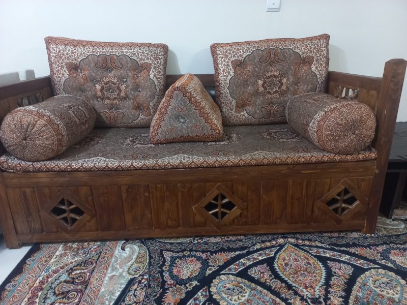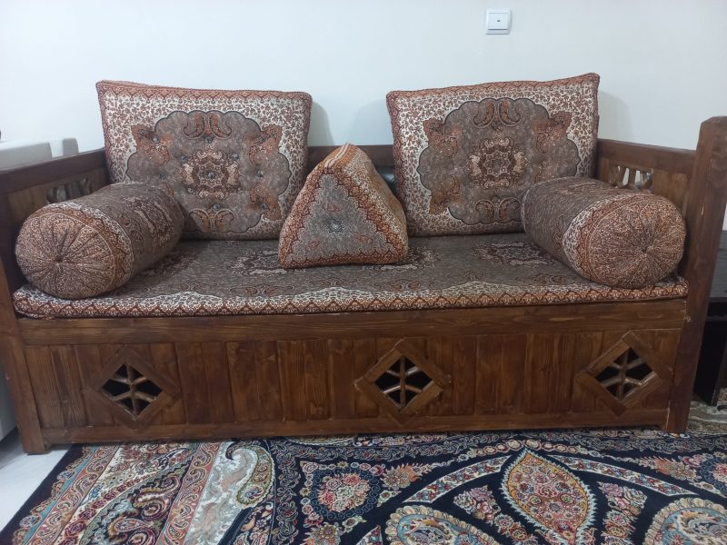 تخت چوبی سنتی قهوه خانه ای یک تشک دوعددپشتی ویک زیردستی قیمت کلی 6000000میلیون تومان