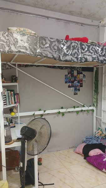تخت حالت دو طبقه ی اهنی هست اما طبقه ی بالا تخته و فاصلش تا پایین ۱۶۰ الی ۱۶۵ هست