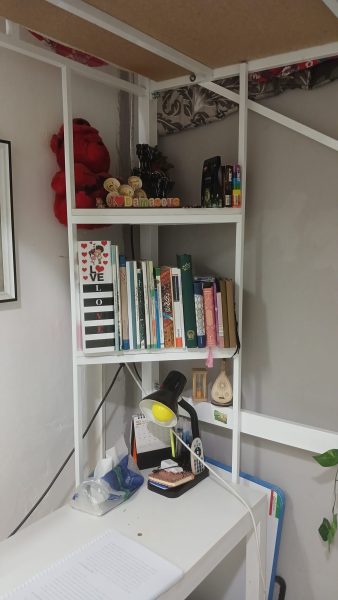 و طبقه ی پایین شامل میز هست و چند تیکه چوب برای جایگذاری کتاب و دفتر