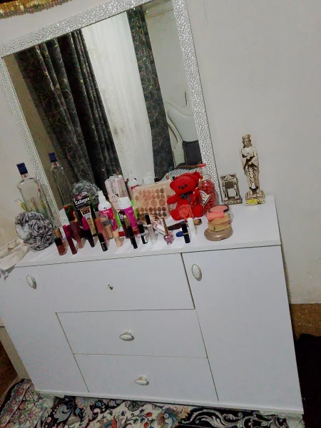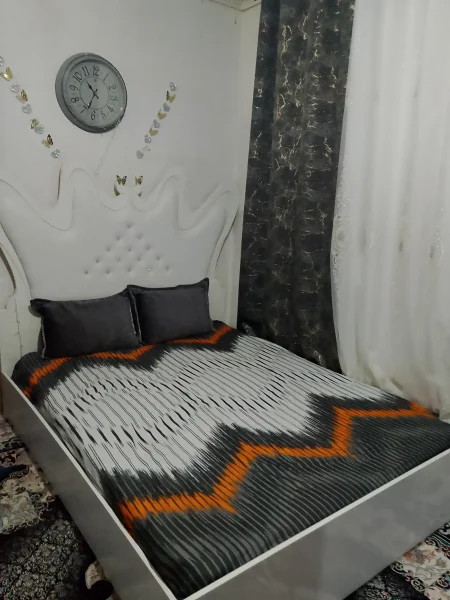 تخت همراه با تشک و میز آرایشی و میز کنار در حد نو