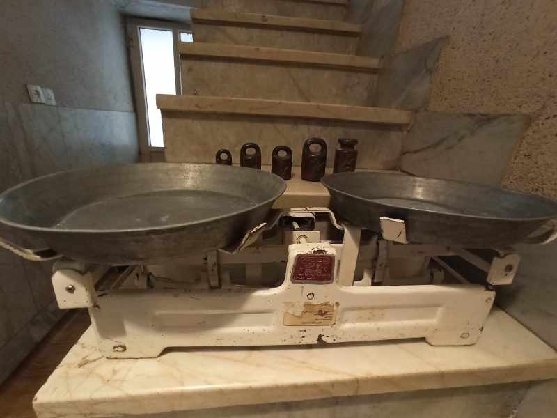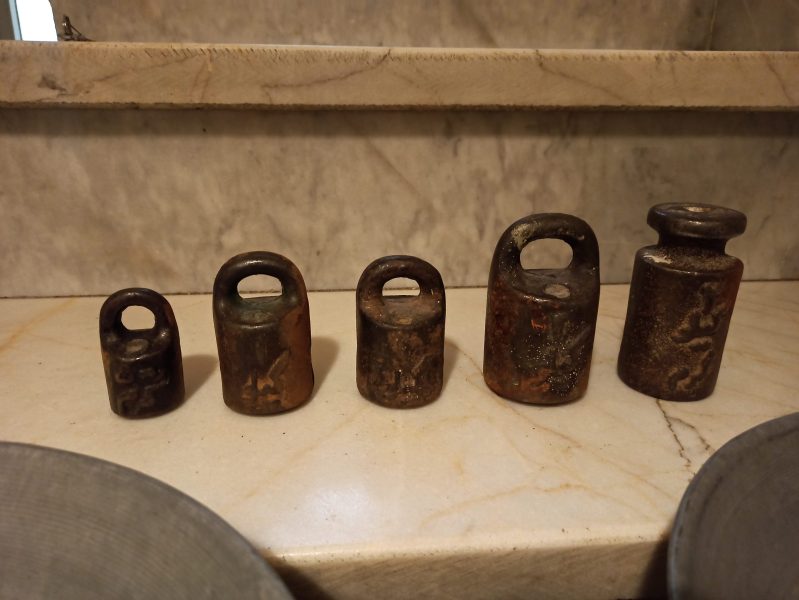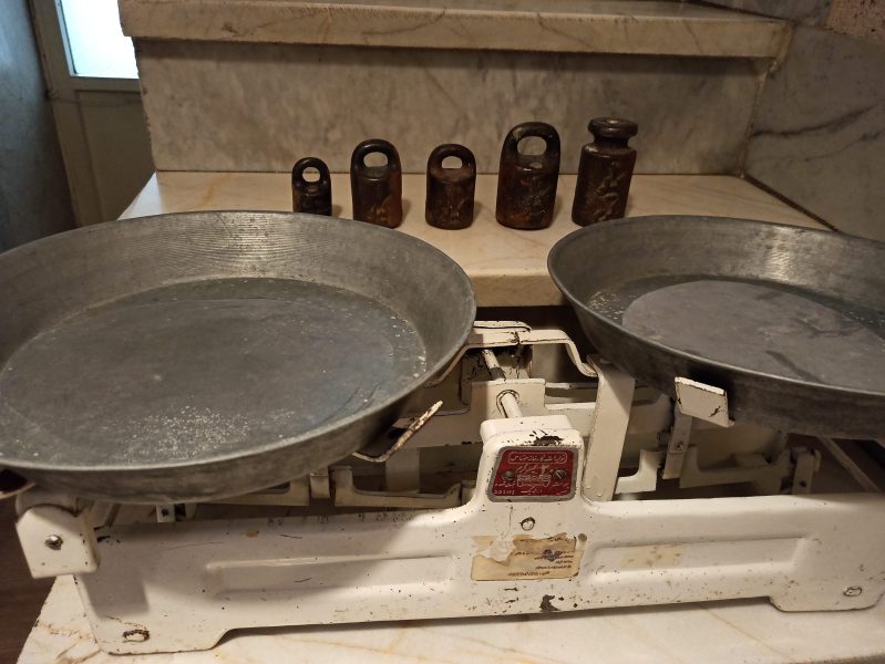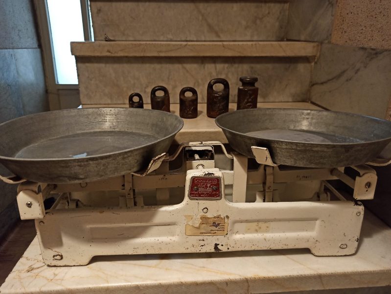 ترازوی سنگی قدیمی … سالمه و دقیق محاسبه میکنه ، همراه با دوتا کفه سالم و وزنه