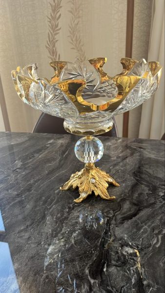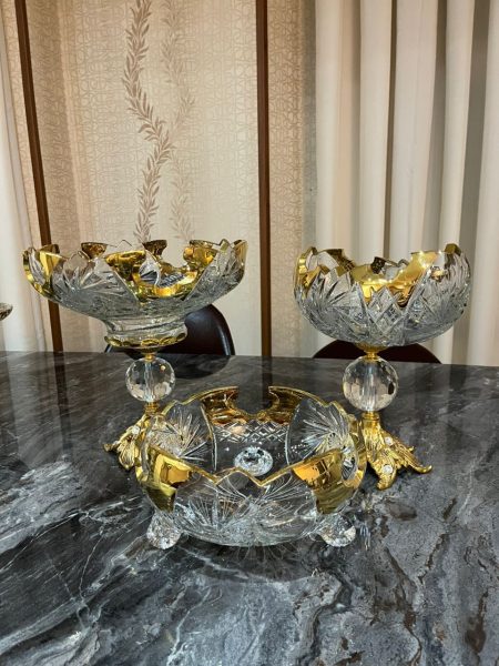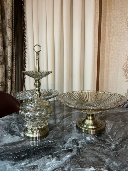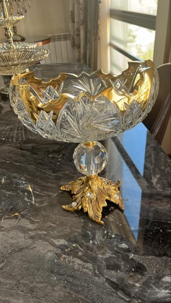 تعدادی لوازم تزئینیشامل شیرینی خوری میوه خوری و آجیل خوری خورشیدی لبه طلایی و شیرینی خوری دو طبقه و شیرینی خوری یک طبقه و شکلات خوری دودی کشکول چینی سرمه ای لیلی مجنون گلدان و زیرگلدان و کلمن کریستال با قیمت پایین بفروش میرسد بعلت مهاجرت تک و یکجا هم بفروش می رسد خرید یکجا شامل تخفیف هم میشود