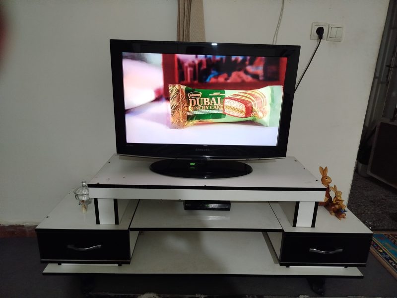 تلویزیون سالم و روشن هست،دستگاه دیجیتال دارد و میز تلویزیون