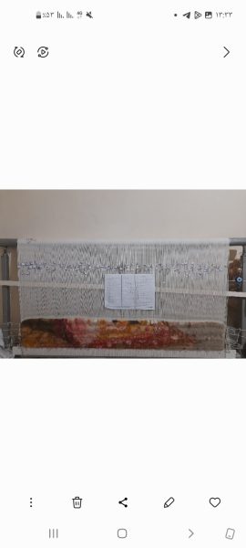مدل تابلوفرش طرح خواستگاری میباشد.۵۸۰رج در۸۵۰گره میباشد۱۳۲رنگ دارد۱۳رنگ آن ابریشم است ۸۴رج آن بافته شده نخ تبریزمیباشدوچله معمولی وابریشم نمیباشد