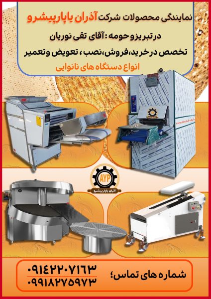 با سلام تولید کننده روتاری و اولین اختراع کننده در ایران با شماره ثبت اختراع 98118 شرکت آذران یاپار پیشرو میباشند ارتباط با آذران یاپار پیشرو یعنی بروزرسانی نانوایی شما مدرنترین دستگاه های نانوایی در شرکت آذران یاپار پیشرو کیفیت عالی شعار ماست شعار ما آبروی ماست و آبروی ما رضایت شماست حتما تماس بگیرید برای راهندازی یک نانوایی جدید یا برای راهندازی دستگاه جدید با مشاوره رایگان در خدمت همه دوستان عزیز در تولید نان هستیم