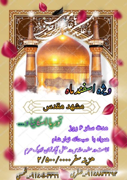 کاروان زیارتی مشهد مقدس با قطار مدت سفر ۷ روز ۴ شب اقامت مشهد در هتل ۲ ستاره صبانحه نهار شام منو انتخابی یک روز در میان از شیراز حرکت