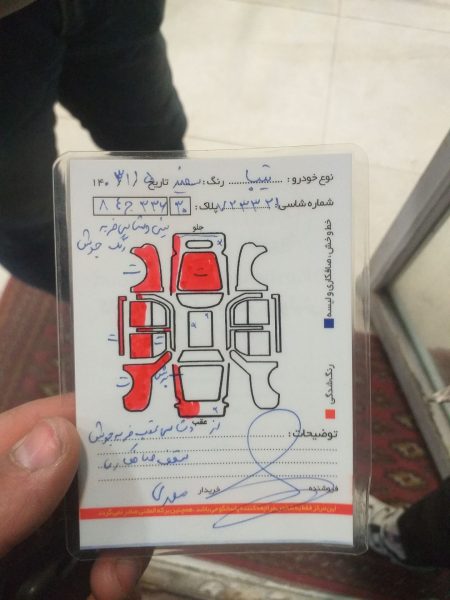 تک برگ سند دو. سه لکه رنگ داره شاسی جلو هم رنگ داره مابقی بی رنگ ماشین دست خانوم بوده والا ماشین خشک صفره