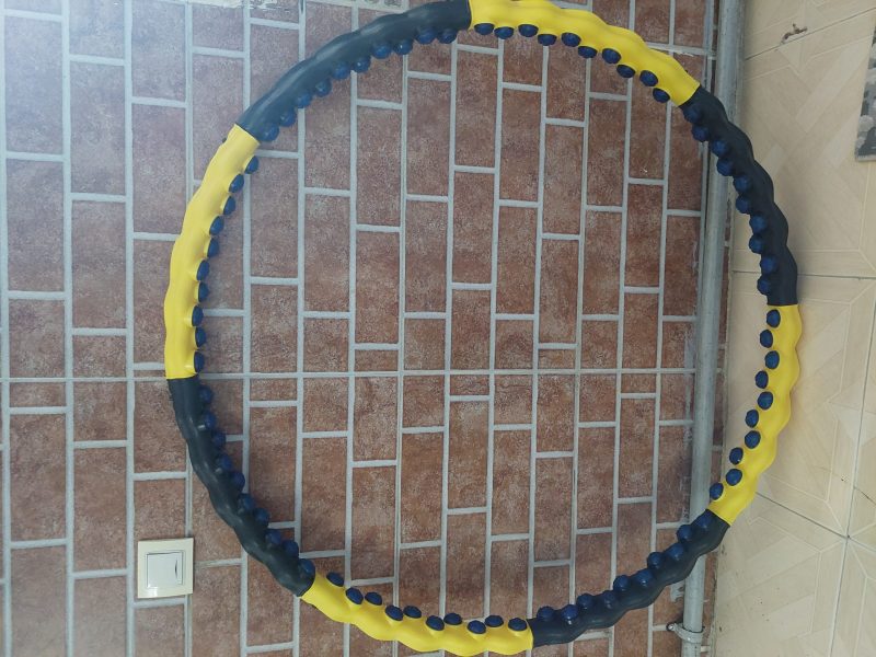 حلقه هولاهوپ.قطر۱۰۴سانتی متر.وزن۱۵۲۱گرم.دارای ۸۰ عدد برامدگی متعدد.ساخته شده از ۸ قطعه.قابلیت تنظیم سایزبا تغییر قطعات