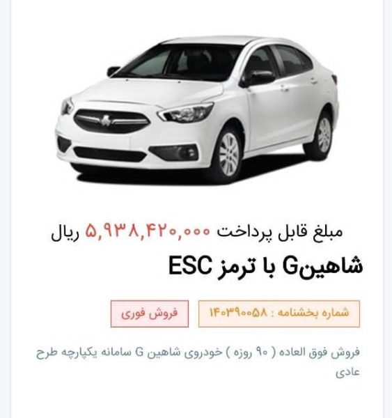 حواله شاهین Gپاییز فروش فوق العاده تحویل ۳ ماهه مبلغ واریزی ۵۹۳/۸۰۰/۰۰۰ درگاه پرداخت بازه