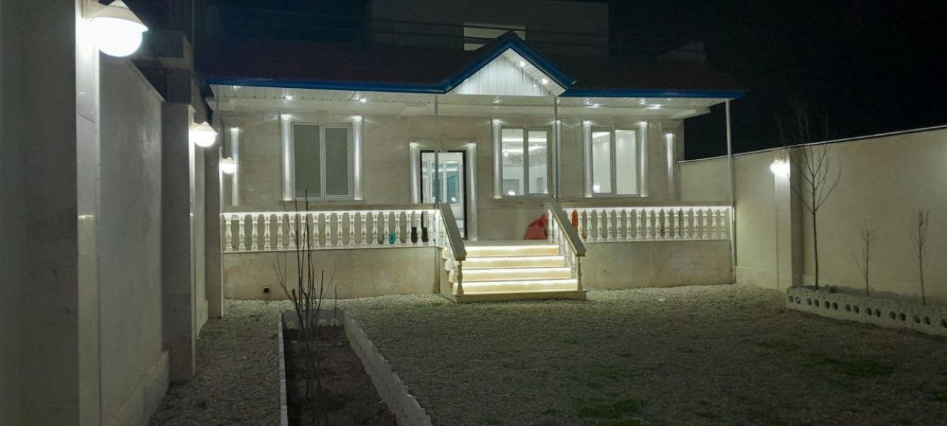 دارای ایوان و شیروانی شده و چراغ بندی و نصب.