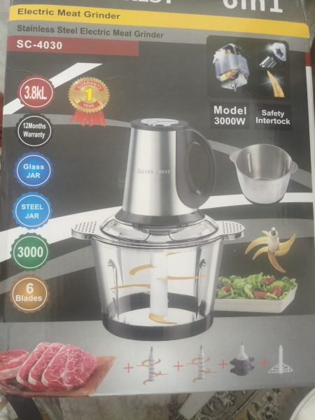 خرد کن silver crest 3000,wat نو دو عدد کاسه استیل و شیشه آسیب 6 پر وزن 3.800