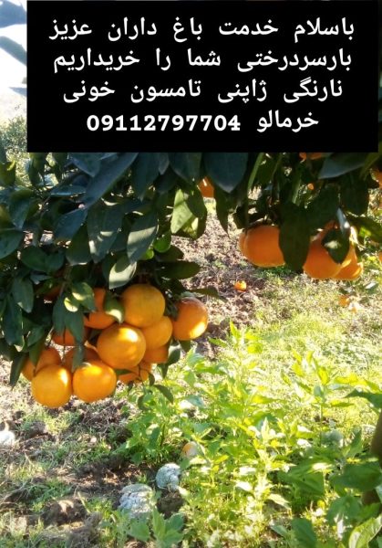 با سلام خدمت باغ داران عزیز بارسردرختی پرتغال نارنگی ژاپنی تامسون خونی پچ یافا لیمو وغیره شما را خریداریم هر طور شما مایل به همکاری هستید نقدی