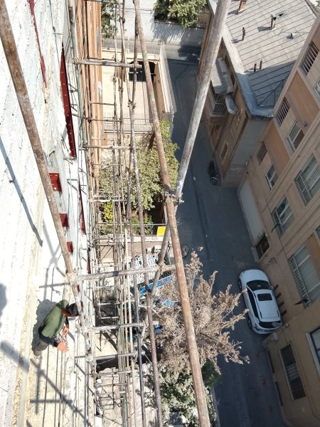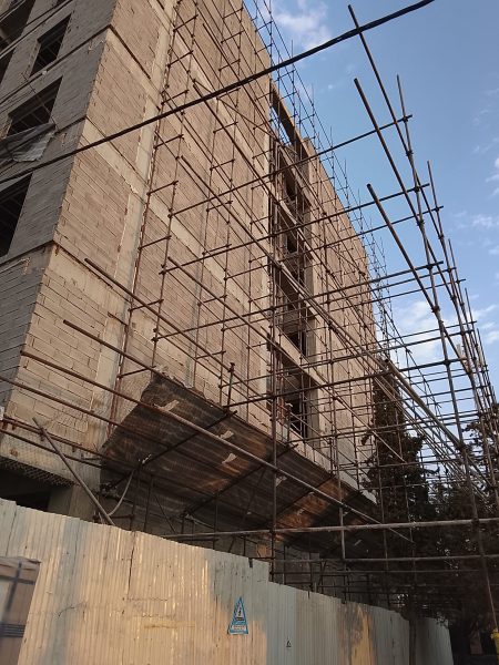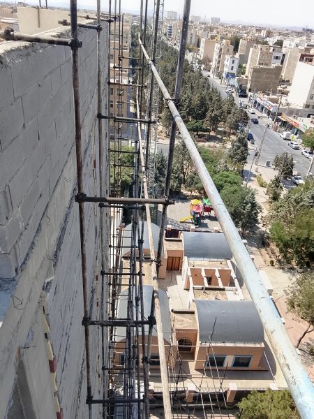 داربست معمولی. کفراژ زیر.بتن پایه هوایی. حفاظ جان پناه