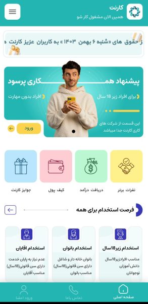 دوستان برنامه کارنت رو از مایکت نصب کنید این کد معرف رو وارد کنید و ۱۰۵هزار تومن دریافت کنید باین برنامه راحت میتونید درآمدزایی کنید اینقد توی فضای مجازی تاب میخورید حداقل کاری که میتونید برای خودتون انجام بدید و درآمد دائم و ماهانه داشته باشیدهمینه عشقید❤