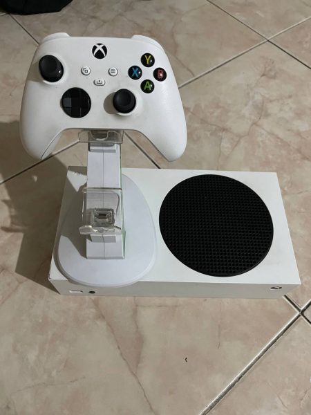 یک دستگاه ایکس باکس با یک دسته و پایه شارژ دسته کاملا سالمه برا دختر بوده استفاده ای ازش نشده