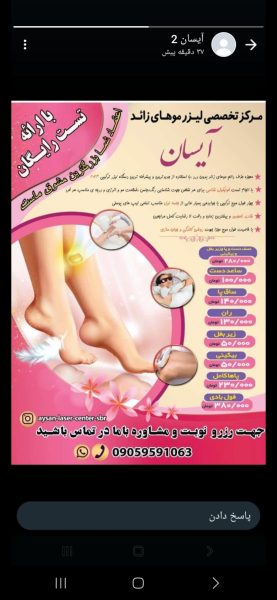 بنده اپراتور لیزر هستم .دارای سالن زیبایی و اتاق لیزر و با بهترین دستگاه و با نازلترین قیمت در بهترین منطقه بتدرامام خمینی مشغول به فعالیت هستم.