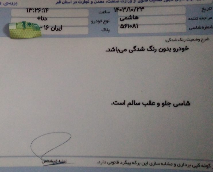 سلام کارشناسی دارد ماشین بی رنگ بدون توضیحات هزینه های مصرفی تسمه تایم و…