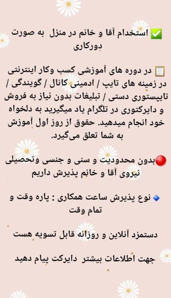 ✅ استخدام آقا و خانم در منزل به صورت دورکاری