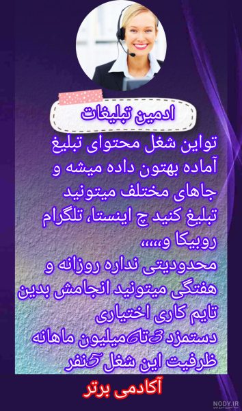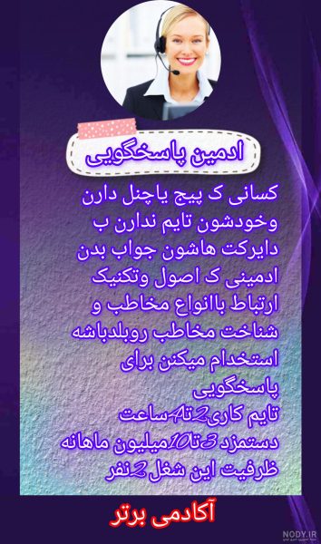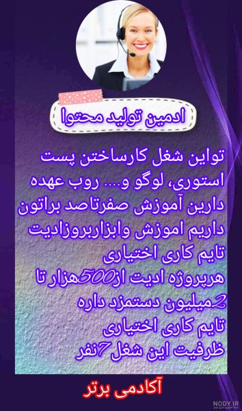 مشاغل آکادمی برتر :ادمین پاسخگویی .ادمین پشتیبانی . ادمین انلاین شاپ.ادمین دایرکتر.ادمین تبلیغات. ادمین پیج و چنل.ادمین تولید محتوا . ادمین سناریو نویسی