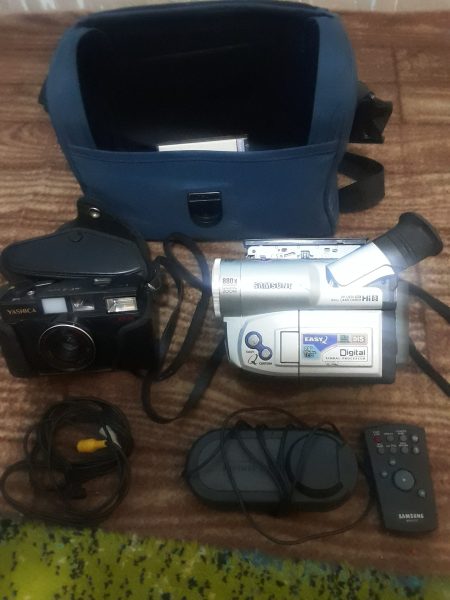 دوربین فیامبردار سامسونگ اصل ژاپن و دوربین عکاسی یاشیکا اصل ژاپن با کیف و شارژر و سبم رابط و کنترل.کاملا سالم.