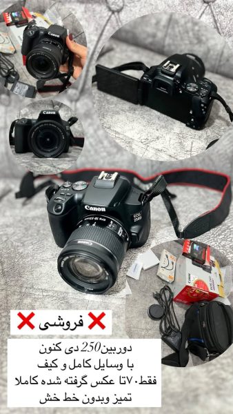 دوربین 250دی کنون با وسایل کامل و کیف فقط ۷۰تا عکس گرفته شده کاملا تمیز و بدون خط خش