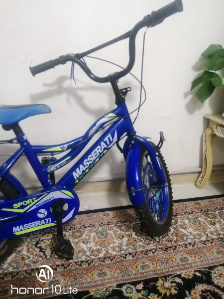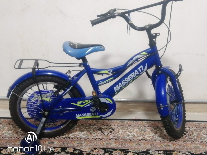 یک عدد دوچرخه سایز 16 نو رنگ آبی با کمکی
