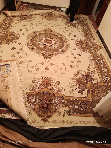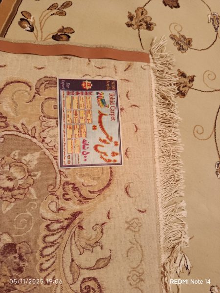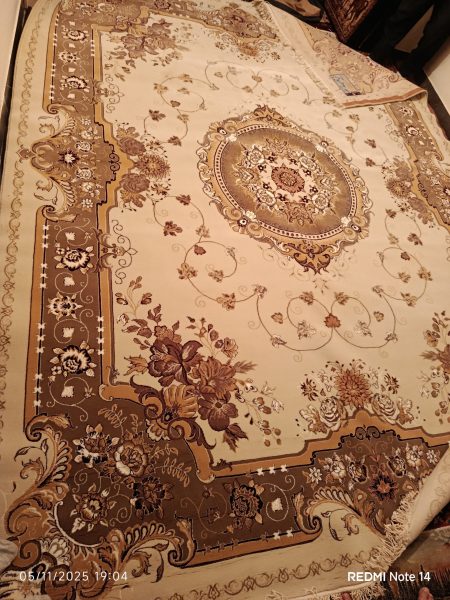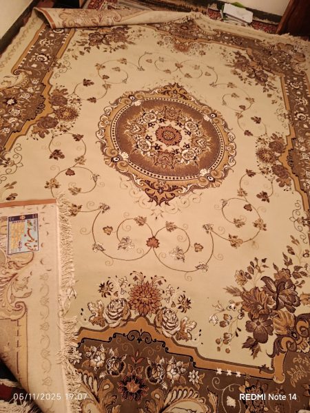 دو تخته فرش نو داخل کاور… دوازده متری.. درجه یک پانصد شانه… صد درصد اکلریک..رنگ کرم گردویی…قالی آرال بیگدل کاشان…