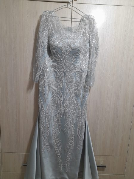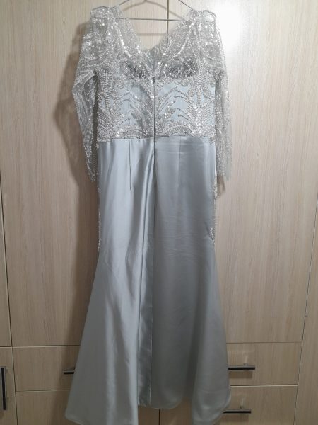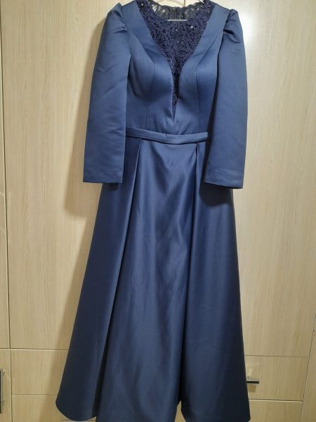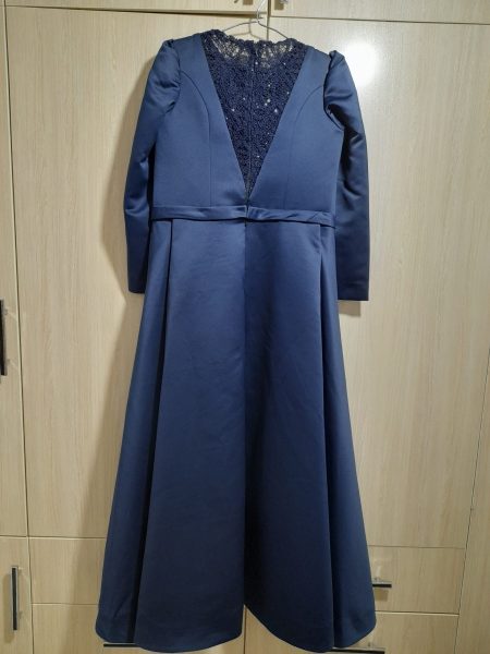 لباس مزون دوخت سورمه ای با پارچه ساتن آمریکایی و بالاتنه گیپور کار شده. قیمت ۵ میلیون