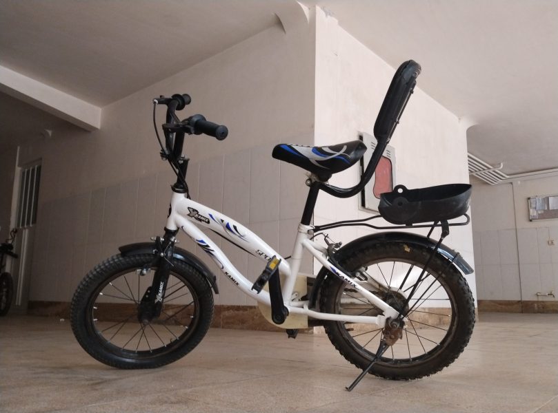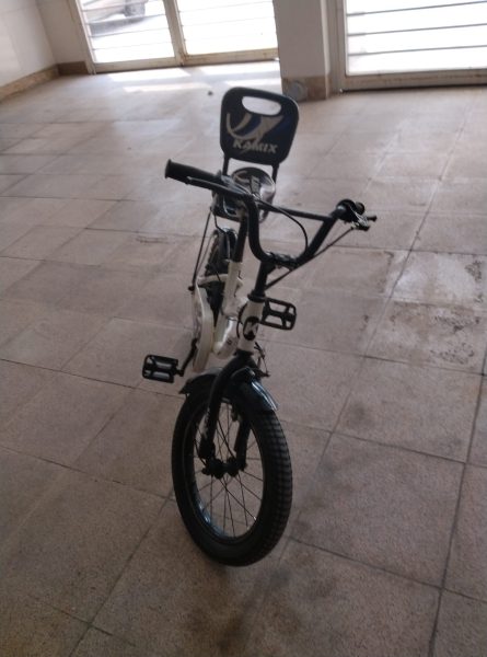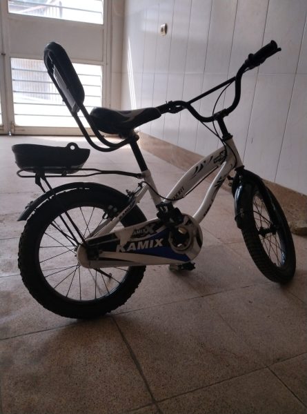 سلام این دوچرخه سایز ۱۶ است وسالم است و در حد نوع است ورنگ آن سفید آبی است