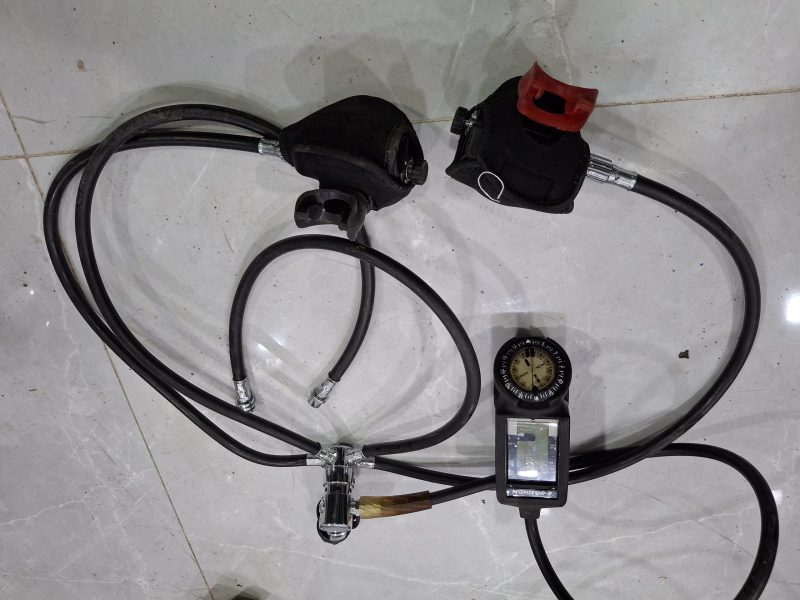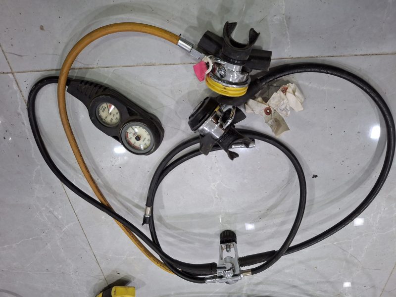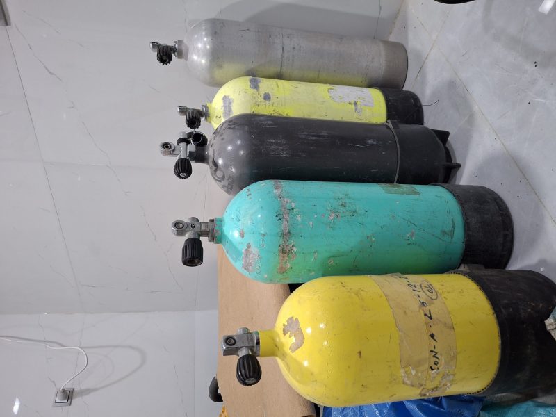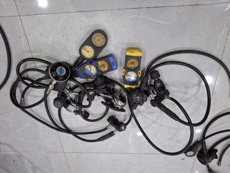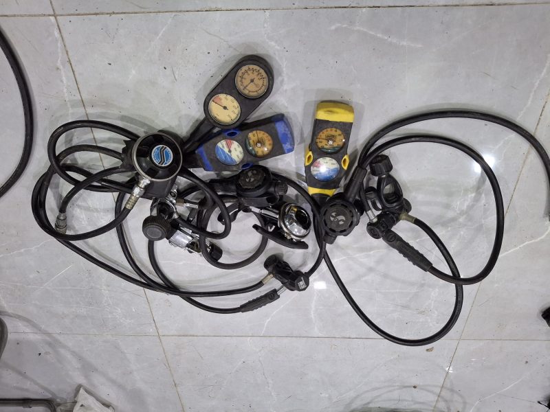 تعدادی دیمند به همراه گیج فشار و عمق سنج و قطب نما و سیلندر ۱۲و۱۵ لیتری استوک و کارکرده