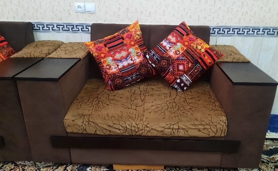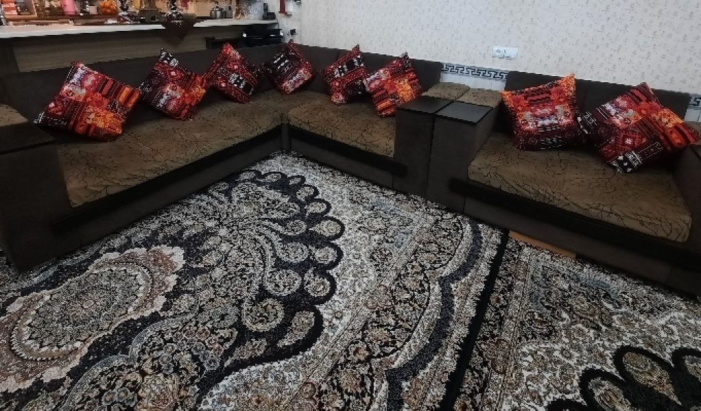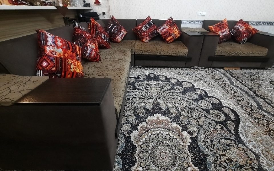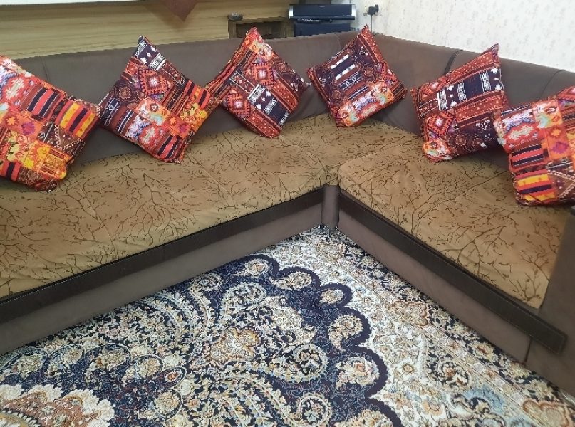 دست مبل راحتی طرح ال همه چیش سفارشی خودم درست کردم کوسن هاخودم جدادرست کردم همه چیش سالم وشیک جنس پارچه درجه یک عسلی کناردست ب مبل چسبیده فقط میز جلومبلی نداره زیرقیمت گذاشتم فروش بره پول هیچیش نیست