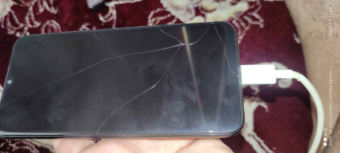 گوشی سالم فقط ال سی دی شکسته در تصویر مشخصه کارتون دارد شارژر ندارد