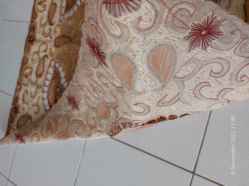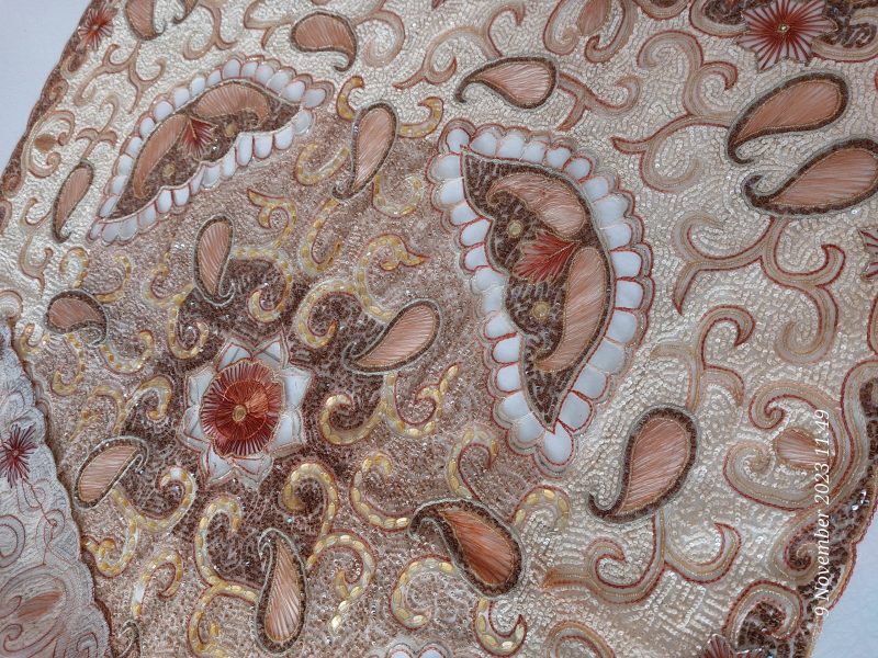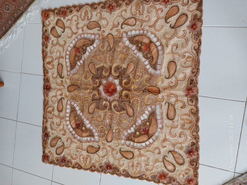 رومیزی هندی ، سایز ۹۰ در ۹۰ ، سالم و تمیز ، بسیار شیک ، رنگ کرم و شکلاتی