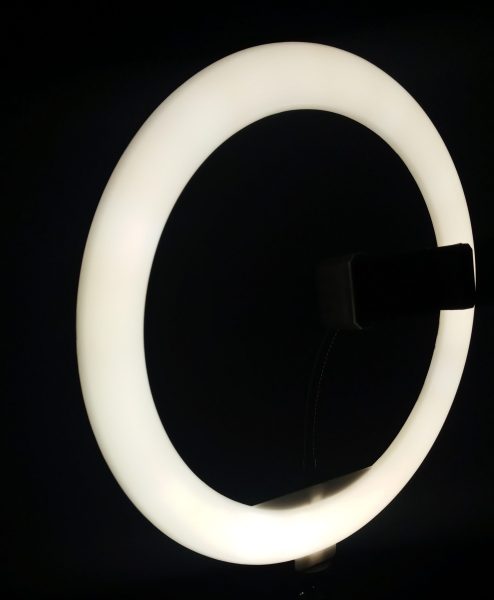 نور یکنواخت و جذابی را دارد که بر روی سوژه ایجاد می‌کند که برای تولید محتوای ویدئویی، آرایش در سالن‌های زیبایی، آموزش میکاپ، عکاسی پرتره، عکاسی از تتو و … عالی است. درواقع، این رینگ لایت سایه‌ها را از بین می‌برد.همانطور که در تصویر میبینید دارای سه رنگ سفید ، شیری ، و کرمی می باشد .کنترل برای گوشی های مختلف مانند آیفون و… را دارد که با وصل شدن به ان میتوان به راحتی گوشی را بر روی پایه گذاشته و سپس با فشار دادن دکمه عکس را بگیرید حتی از مناطق دور.