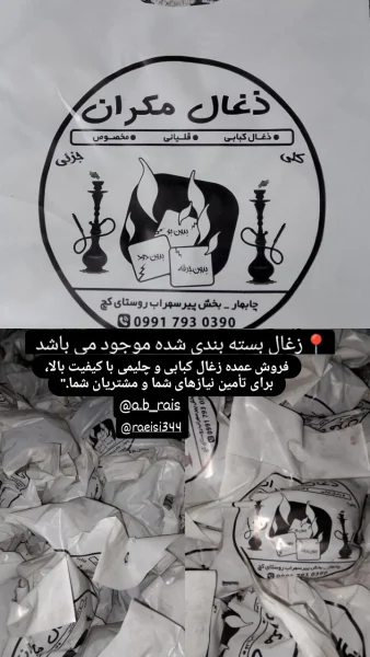 تولیدی زغال درخت چش بلوچستان با بهترین کیفیت با بسته بندی ۷۰۰گرمی و کیسه های ۱۵تا ۲۲کیلو گرمی