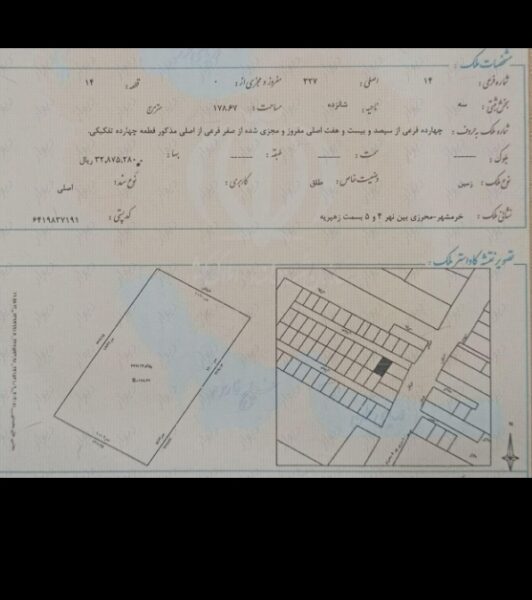 با سلام زمین مهرزی نهر پنجم با همسایه ی محترم به فروش میرسد آدرس دقیق میشه نهر پنجم ترانس دوم تخفیف سر معامله داده میشه مکانش بسیار مناسبه من به دلیل نیاز دارم میفروشم وگر ن مکان و همسایه ها عالی هستن برق و آب و گاز هم از زمین عبور کرده خیابان خاک آسفالت شده بزودی هم آسفالت میشه منتظرن فاضلاب رو تمام کنن قطعه زمین سر نبشه نزدیک به خیابون هستش یک قطعه زمین به متراژ178در موقعیت مناسب وآرام و با امنیت بالا و همسایگان محترم به فروش میرسد