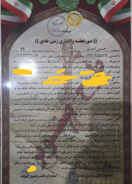 کاربری فعلا عیر مسکونی.برای سرمایه گزاری خیلی خوبه .دلال نیستم لطفا خریدار واقعی تماس بگیره