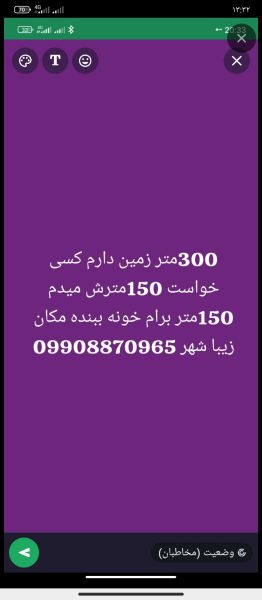 زمین 300متر سال 75خریدم 200مترش میدم100مترش برام بسازه بدون مشکل زیبا شهر هست پشت ساختمان های ترمینال خودم بقل زمین زندگی میکنم فامیلم زندگی میکنه