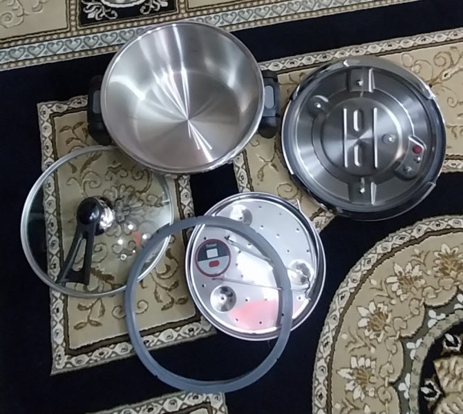 دارای سبد بخارپز ، یک واشر زاپاس ، درب شیشه‌ای و تایمر میباشد .