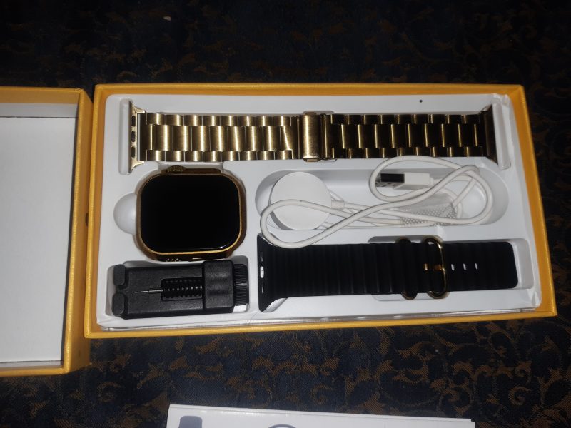 ساعت نو میباشد دارای دو بند ساعت زرد رنگ سابت ومشکی چرم