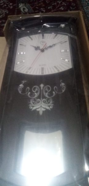 یک عدد ساعت دیواری سالم ونوع وداخل نایلون درنیامده داخل کارتون هست