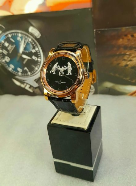 ساعت مردانه اولیسه ناردین اتومات طرح اهنگر بدون ثانیه شمار بسیار کمیاب کلکسیونی و خاص ، قاب موتور میکروندار روکش عیار دار شیشه یاقوت کبود ضد خش بند چرمی مرغوب دست دوز
