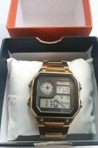 ساعت مچی دیجیتال بند فلزی و طلایی رنگ ثابت… ( برند اسکمی ) ضد آب باتری ۵ ساله و اسپرت هستش…(هم زنانه و هم مردانه) به مشتری واقعی تخفیف تازه میشود…😎🙏