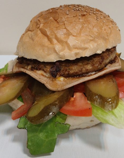 برگرها همه دست ساز ران وسینه چرخ شده وزن هر برگر110گرم با یک ورق کالباس ژامبون مرغ 80٪پنیر پیتزا خیارشور _کاهو _گوجه فرنگی ونان گرد:قیمت هرساندویچ کامل با هرطعم 225000تومان