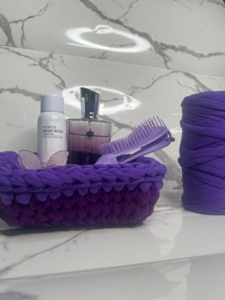 سبد تریکو باکیفت دست ساز در درشکل داره و مستطیل در دو رنگ بنفش و سبز و کرم موجود است